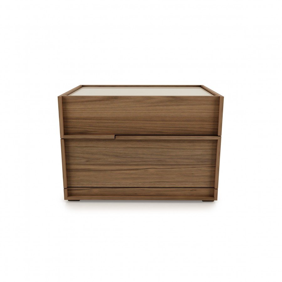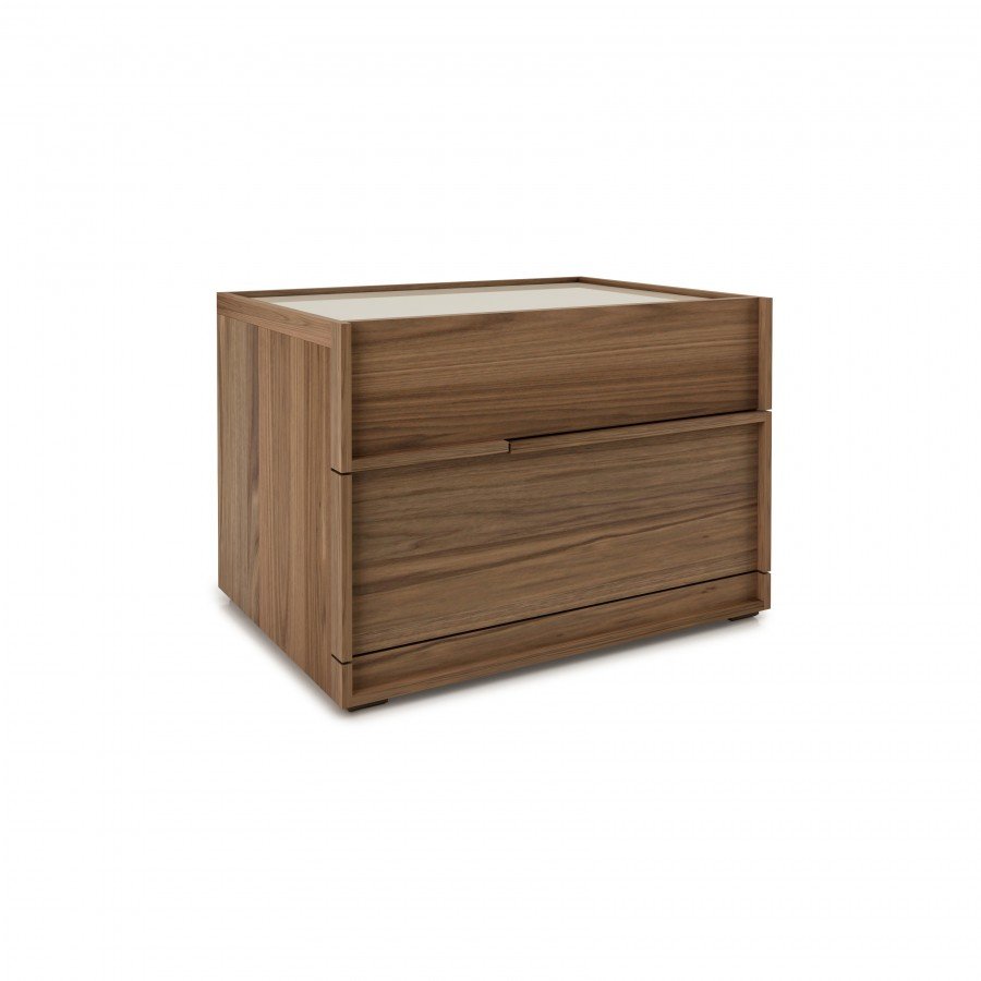 This nightstand is available with an optional lacquered glass or ceramic top for added eloquence and distinction. The silky finish of the Russian birch drawer interiors treated and stained to match the furnishings protects the most delicate articles of clothing. . Dimensions: 26″W x 19″D x 18″H