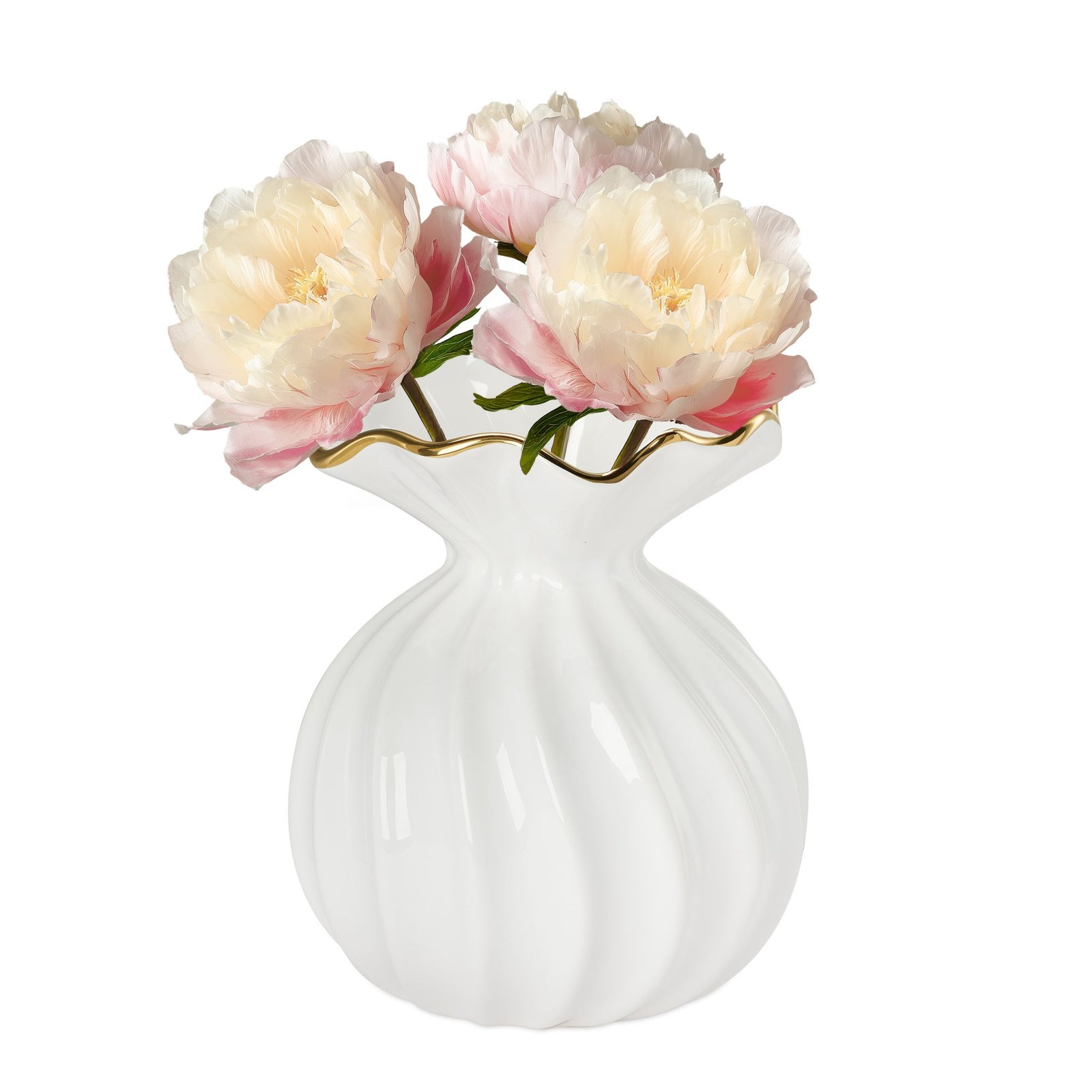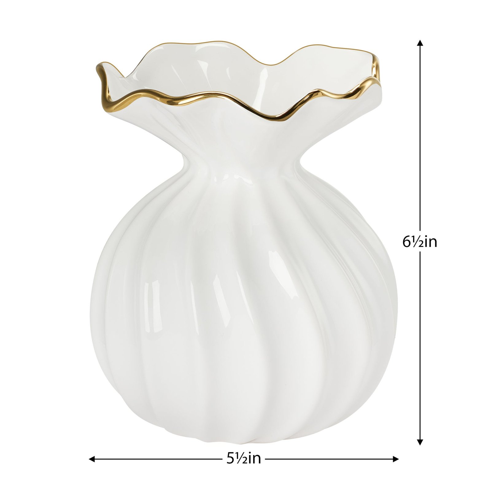 Talia Flared Swirl Gold Trim 6.5 Inch Tall Ceramic Vase