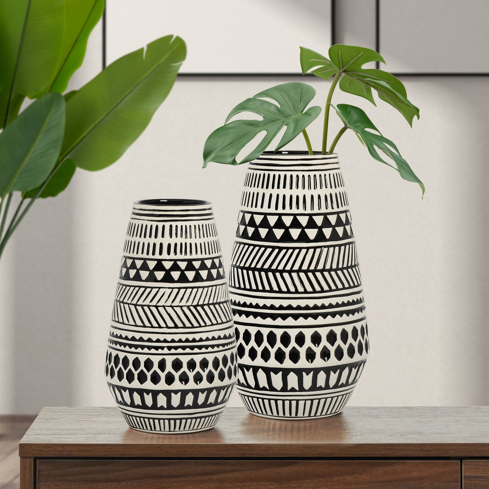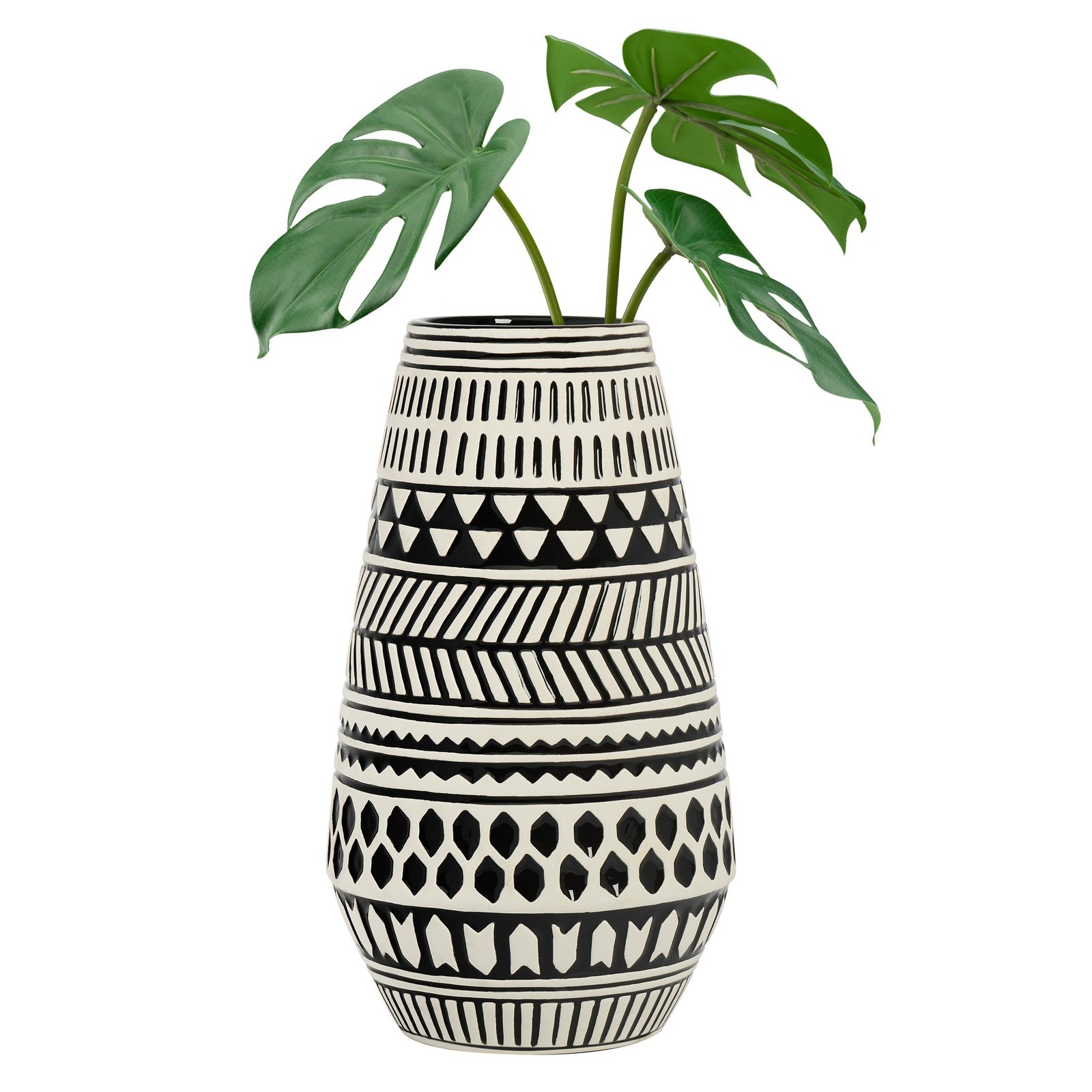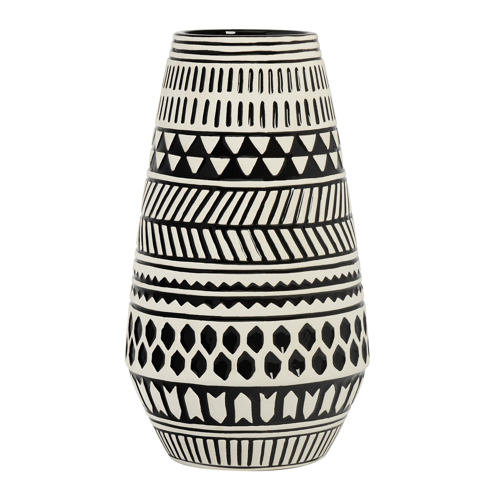Tama Black & White Pattern 11.5h” Tapered Ceramic Vase