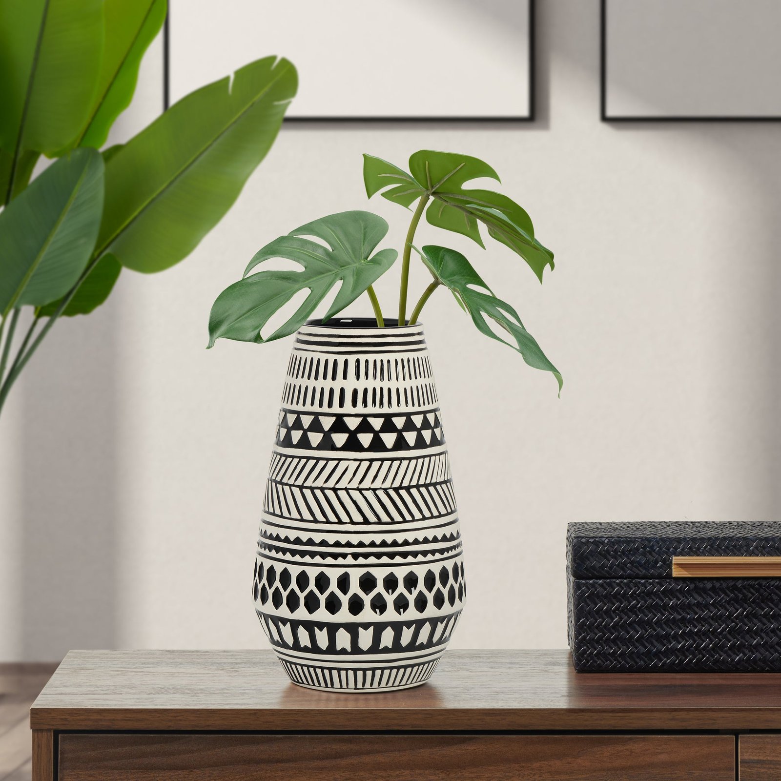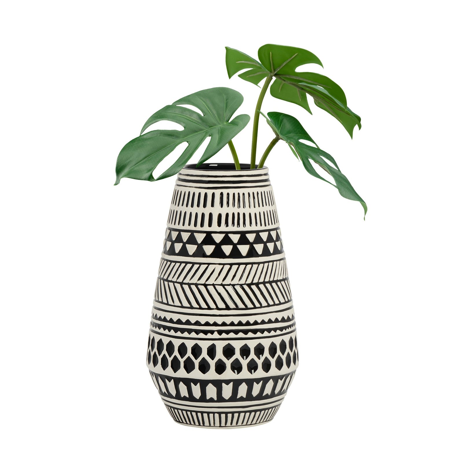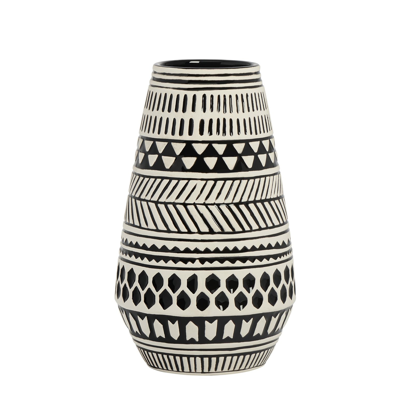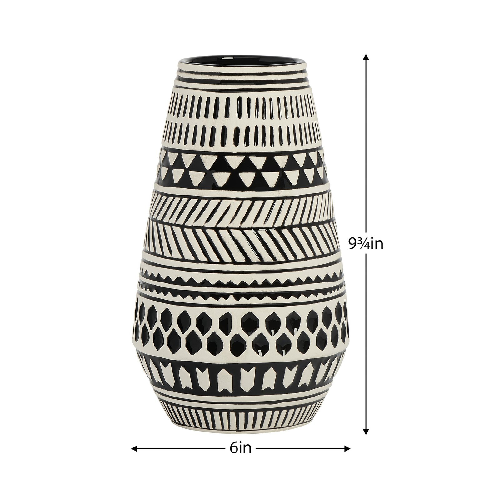 Tama Black & White Pattern 9.75h” Tapered Ceramic Vase