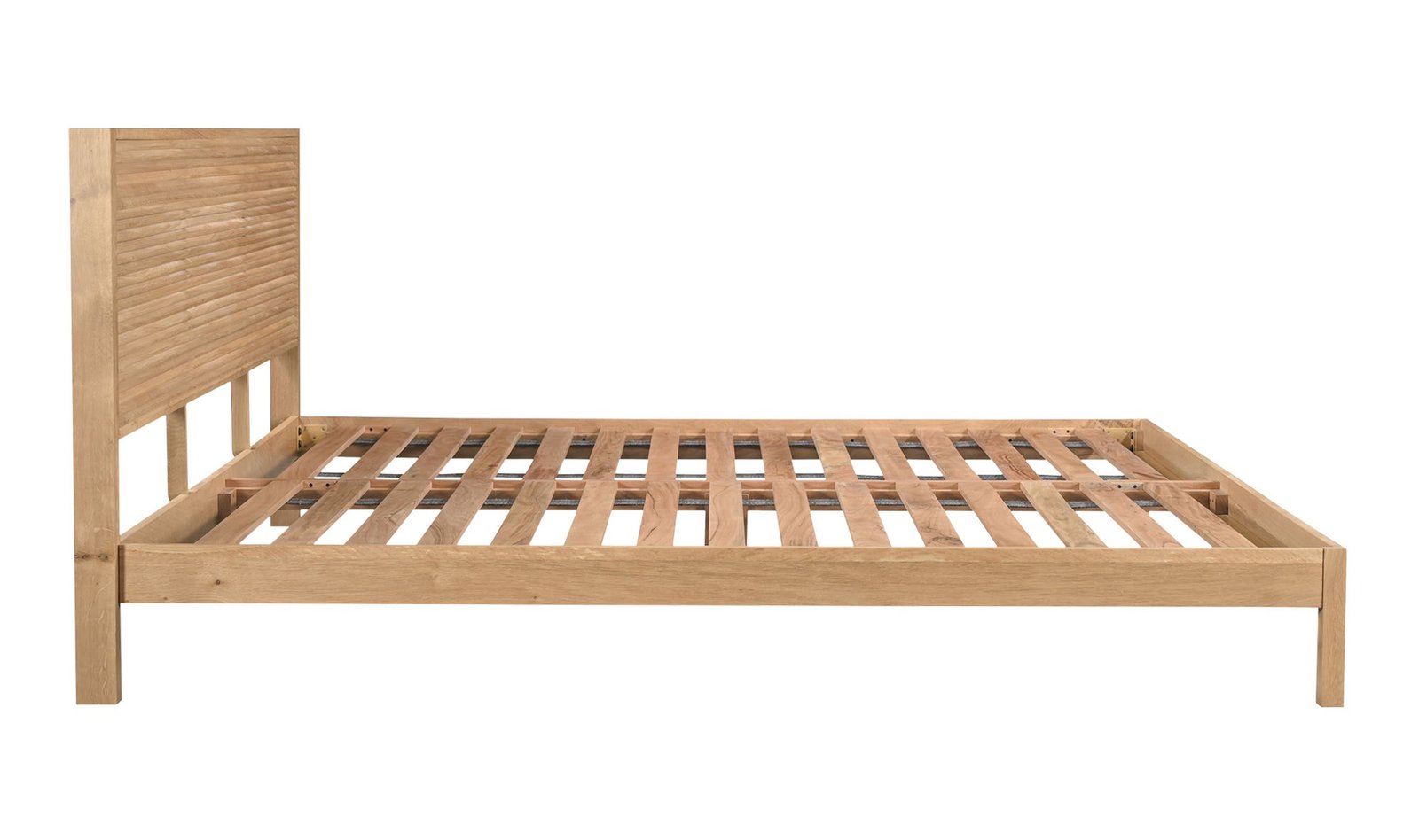 Inspired by the jalousie windows of Florida the Teeda king bed?s shutter-like headboard evokes memories of warm tropical days where the aroma of freshly-picked oranges and sizzling BBQed prawns fill the air. Its clever arrangement of slats creates an exquisite play of light and shadow a stunning visual element that adds depth and texture to any space. Crafted from solid oak this bed exudes timelessness while providing plenty of visual intrigue.. Dimensions: 80.25? W X 84.5? D X 39.0? H