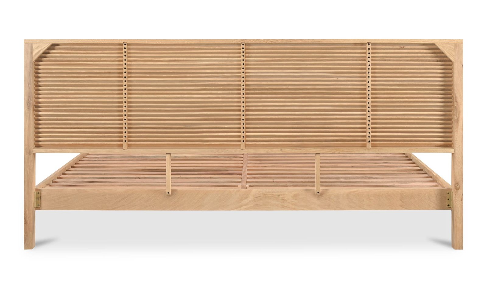 Inspired by the jalousie windows of Florida the Teeda queen bed?s shutter-like headboard evokes memories of warm tropical days where the aroma of freshly-picked oranges and sizzling BBQed prawns fill the air. Its clever arrangement of slats creates an exquisite play of light and shadow a stunning visual element that adds depth and texture to any space. Crafted from solid oak this bed exudes timelessness while providing plenty of visual intrigue.. Dimensions: 64.0? W X 84.5? D X 39.0? H