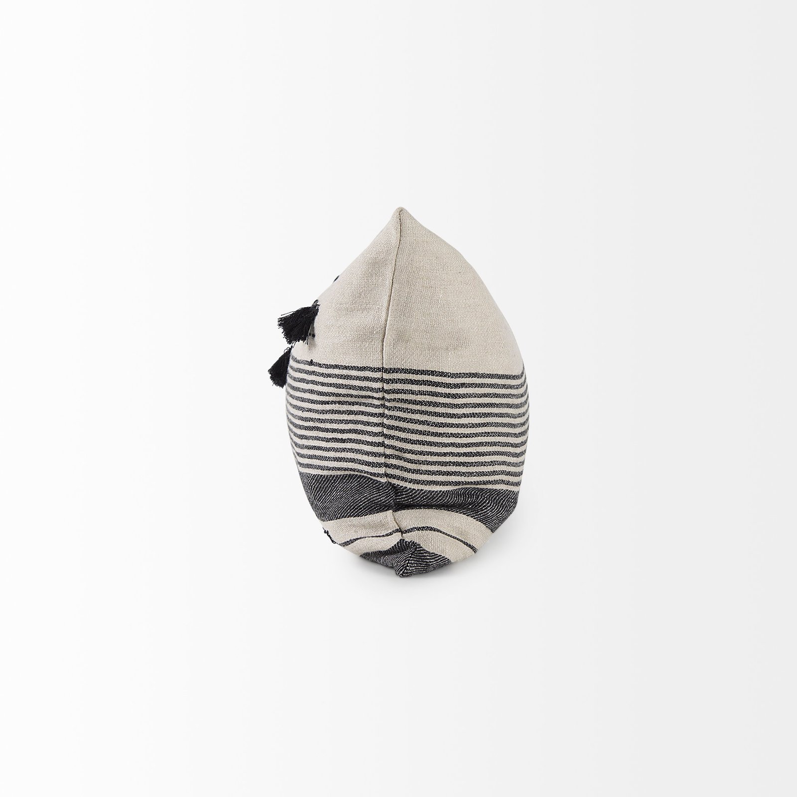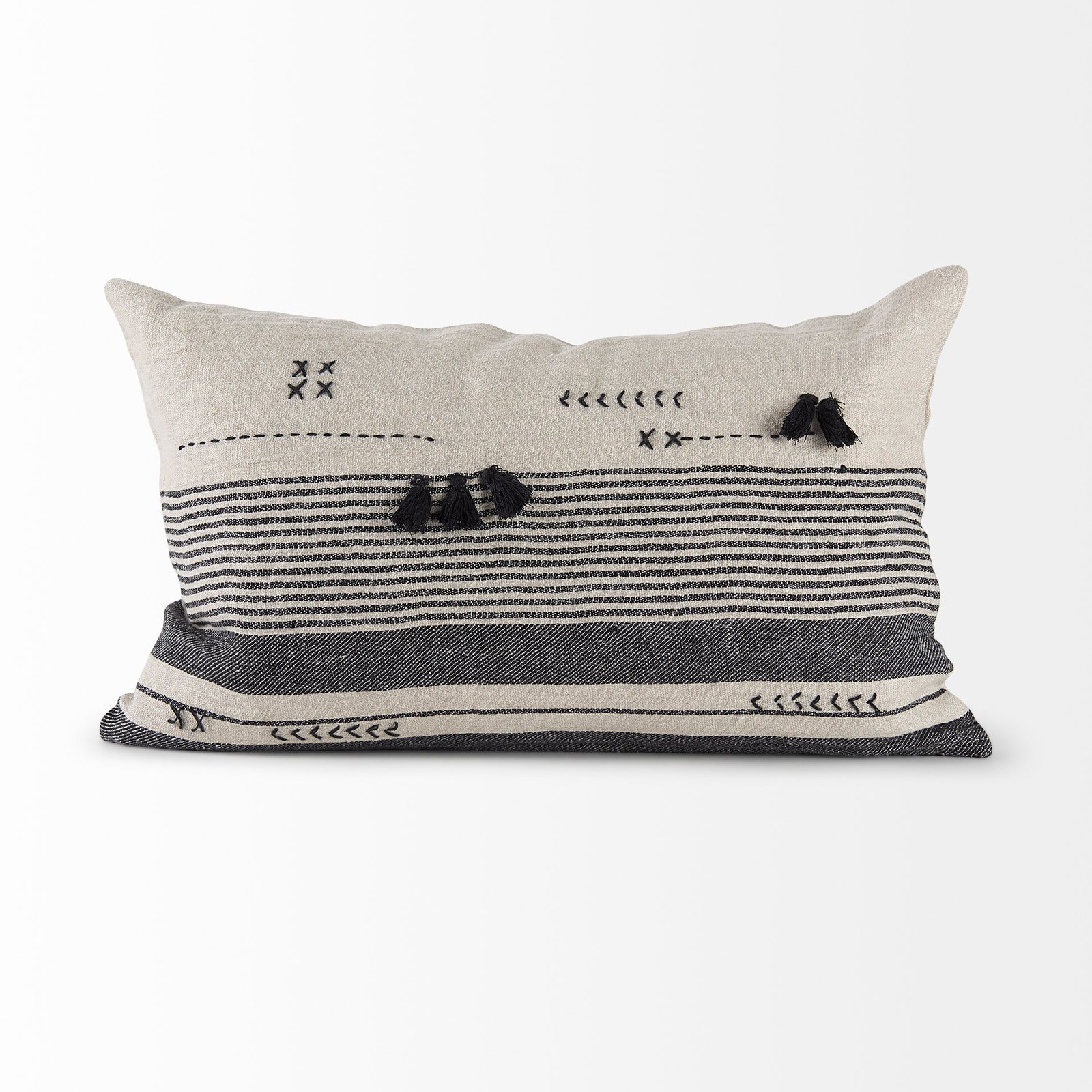 / Thalia 13L x 21W Black and Beige Fabric Striped and Fringed Decorative Pillow Cover