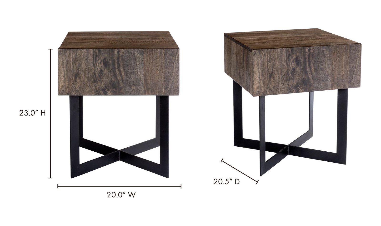 The Tiburon Side Table is a nod to the contemporary aesthetic. It features a solid acacia wood drawer for ample storage and a sturdy powder-coated iron base that’s built to last.. Dimensions: