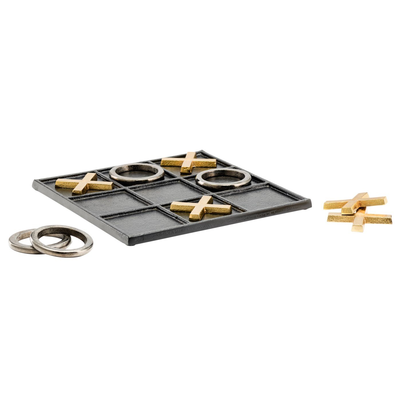 A nostalgic game with designer appeal. Complete with x’s and o’s this aluminum game of tic-tac-toe is both fun to play and a stylish accent piece. Makes a great addition to the den or living room or place on your desk in the office. Dimensions: 9 x 9 x 0.5h”. X’s and O’s each approx. 2.5