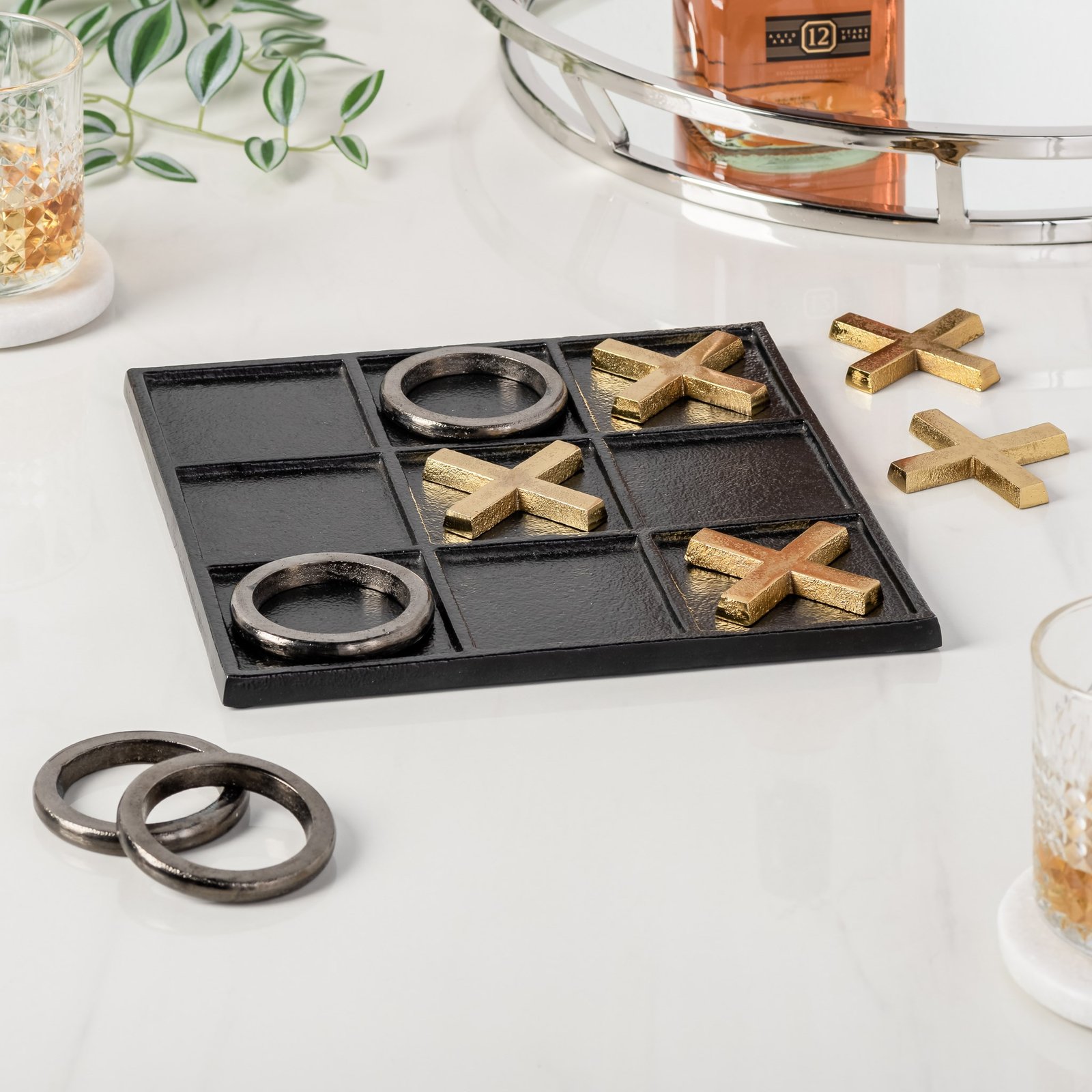 Tic Tac Toe 9×9″ Aluminum Decor Game – Black