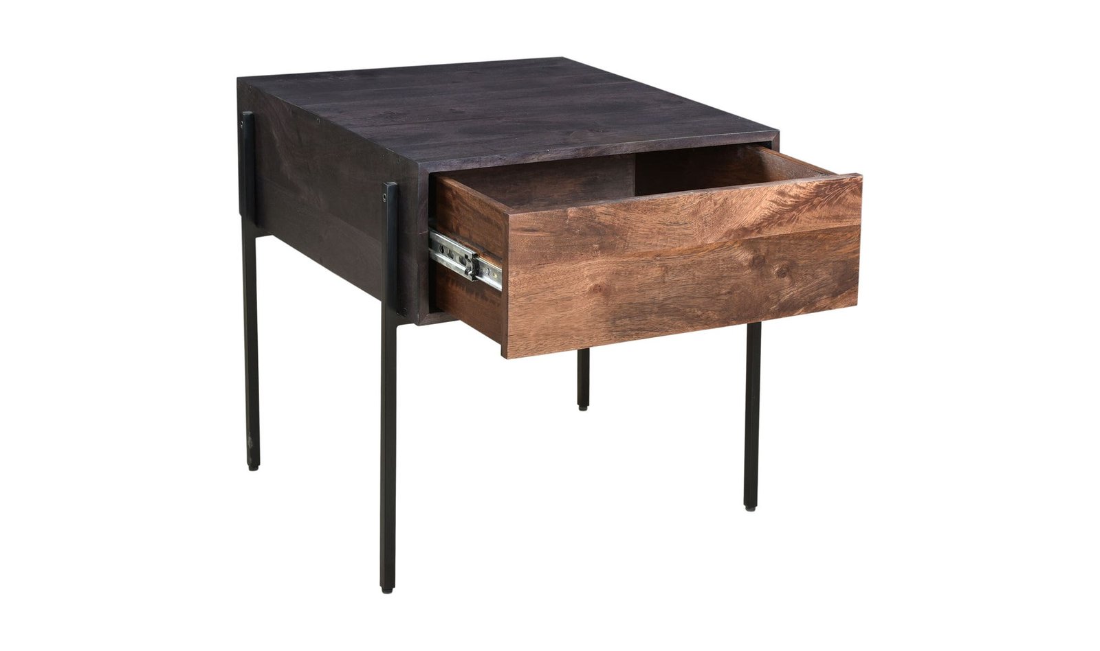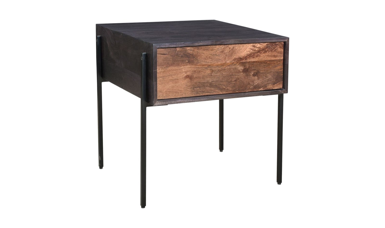 Bring the rich organic hues of solid mango wood into your living room with the Tobin Side Table. One spacious drawer provides subtle organization for smaller items for a clutter free space. The side table’s sleek ion frame maintains a modern industrial look in any space.. Dimensions: