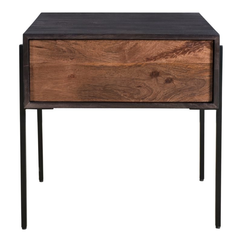 Bring the rich organic hues of solid mango wood into your living room with the Tobin Side Table. One spacious drawer provides subtle organization for smaller items for a clutter free space. The side table’s sleek ion frame maintains a modern industrial look in any space.. Dimensions: 22.0? W X 22.0? D X 22.0? H