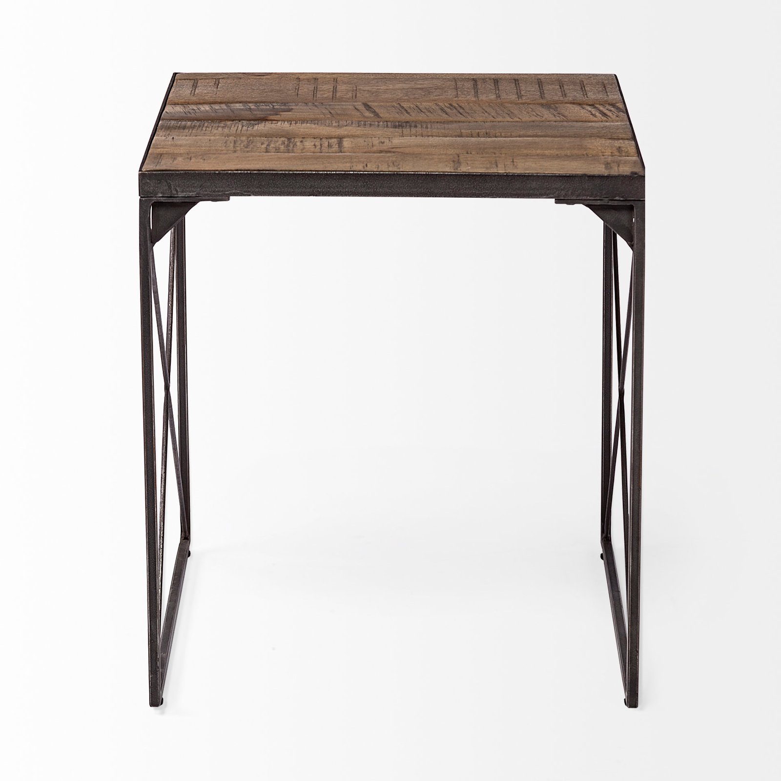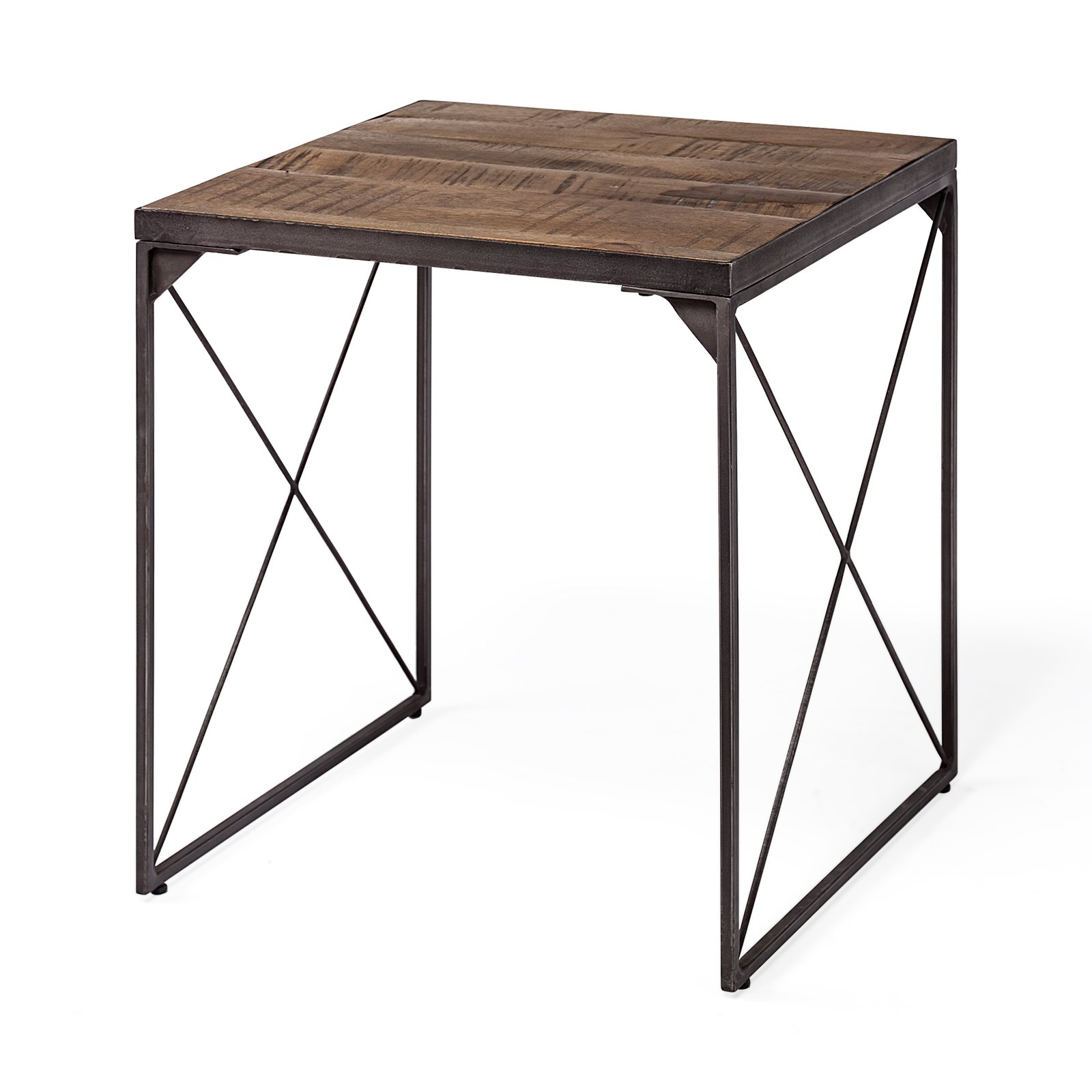 Trestman II 24″ x 22.5″ Square Top Medium Brown Wood and Iron Cross Braced End/Side Table