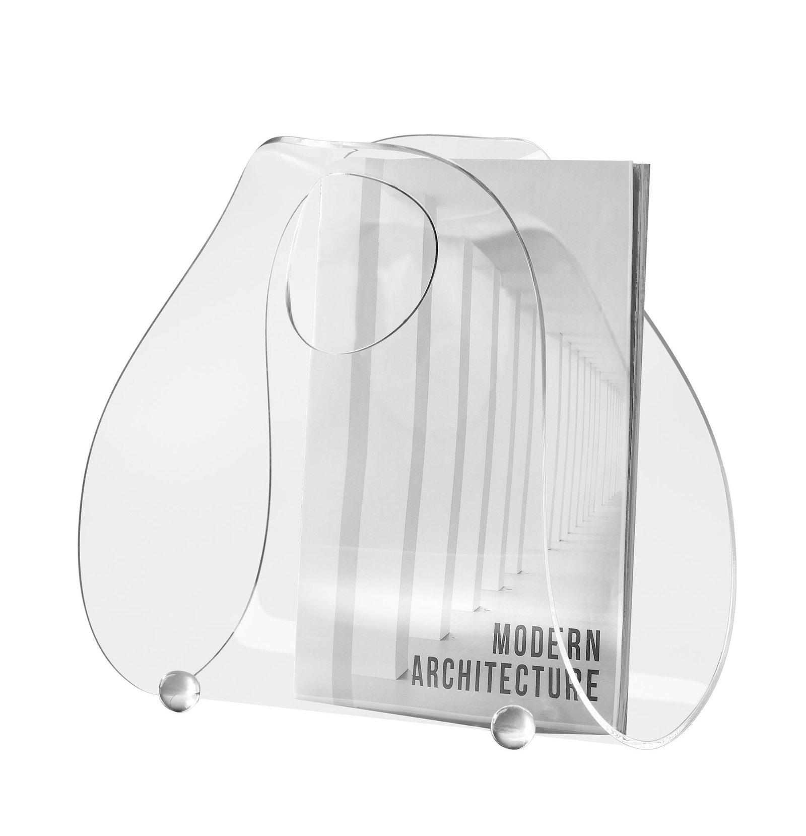 Create a modern display with this curved acrylic magazine holder. The clear acrylic makes this design the perfect showcase for books and magazines and easily allows you to see what’s inside. Dimensions: 12.5 x 6 x 11.5h