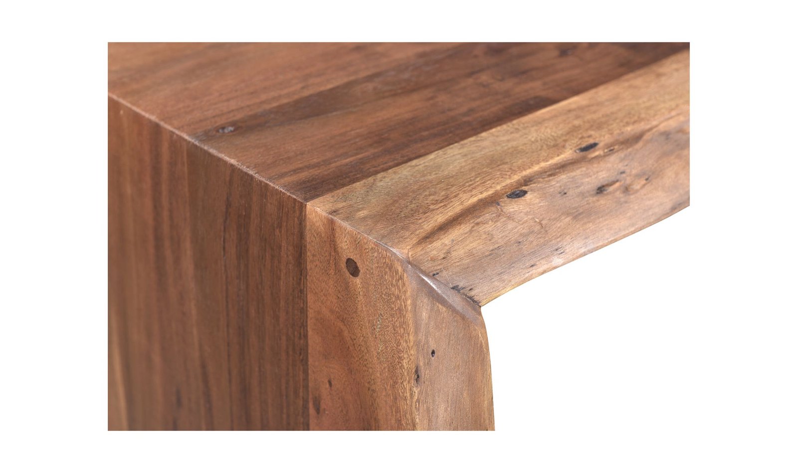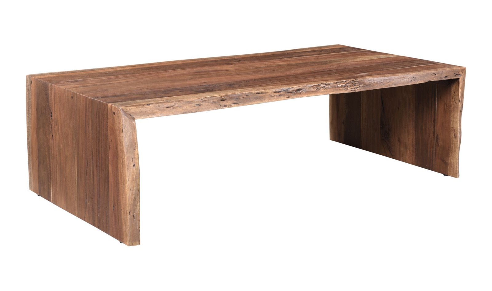The Tyrell coffee table is pure rustic simplicity. Crafted from solid acacia wood the natural finish and live edge are complete with contrasting shades grain patterns and knots making every piece unique. Nature never looked so breathtaking indoors.. Dimensions: 54.0? W X 28.0? D X 16.5? H