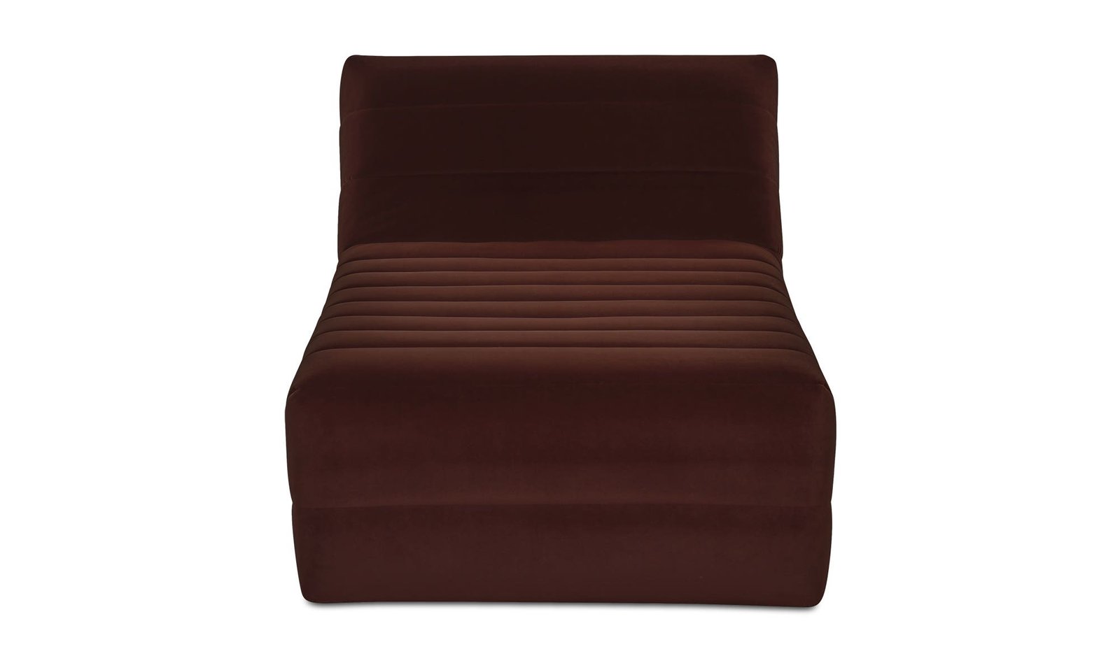 The Verity chaise features a plump form enveloped in warm brown velvet upholstery for a touch of elegance. Wide channel detailing adds texture and visual interest complemented by rich warm tones that tell a story of comfort and coziness as the high-density foam seat provides a plush seating experience.. Dimensions: 37.8? W X 74.4? D X 31.5? H
