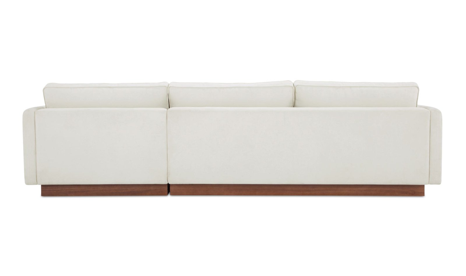 The Vernon sectional blends mid-century design with modern functionality. It features a wooden plinth base for an elevated lighter appearance. This sectional offers unmatched comfort with removable cushions. Upholstered in durable OEKO-TEX and Green Guard-certified fabric it is ideal for family living combining everyday practicality with durability.. Dimensions: 112.0? W X 63.0? D X 30.7? H