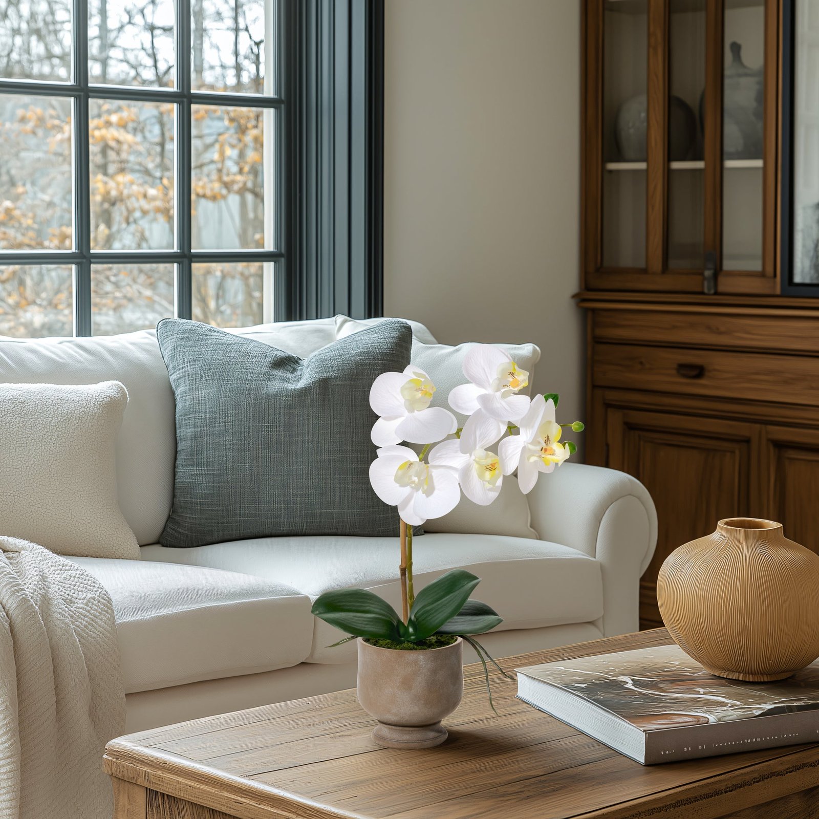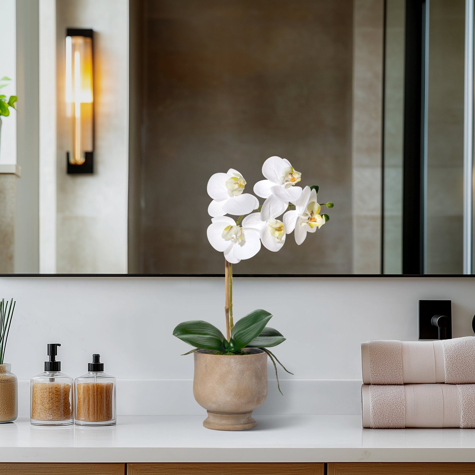 Verona 15.5 Inch Tall Urn Potted Real Touch Orchid – White