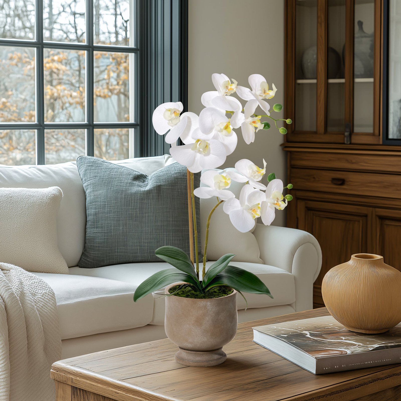 Verona 22 Inch Tall Urn Potted Real Touch Orchid – White