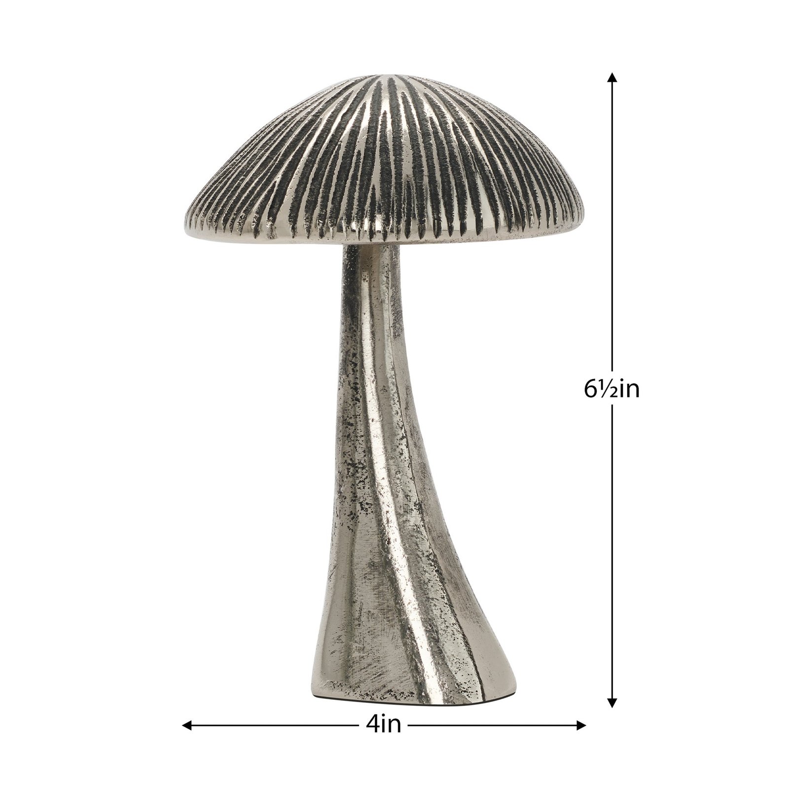 Vintage Mushroom 6.5 Inch Tall Nickel Plated Aluminum Decor Sculpture