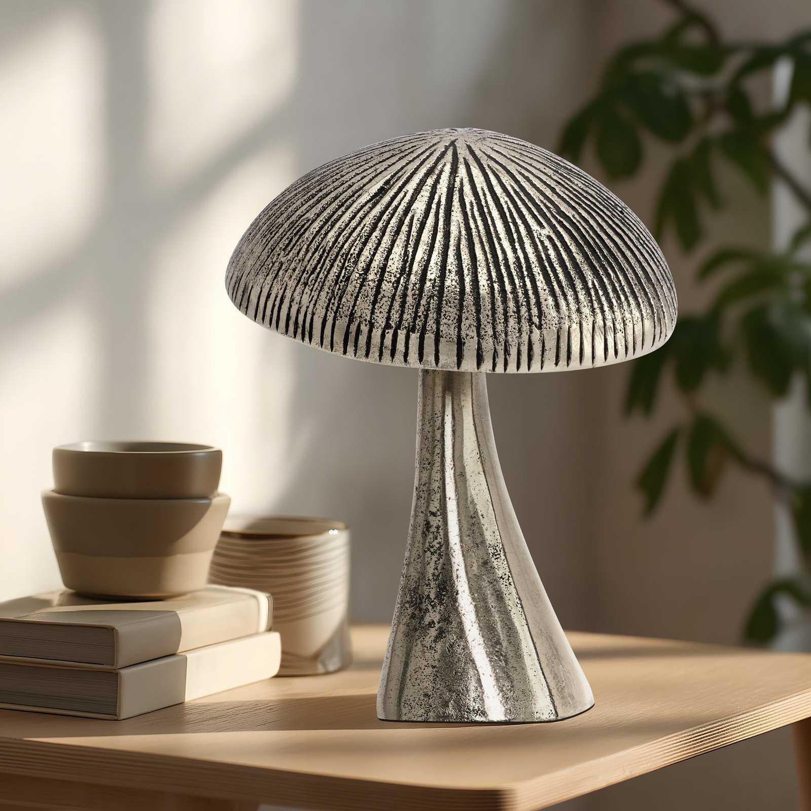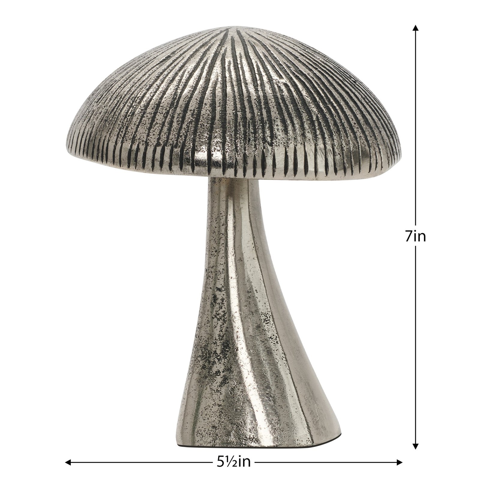 Vintage Mushroom 7 Inch Tall Nickel Plated Aluminum Decor Sculpture