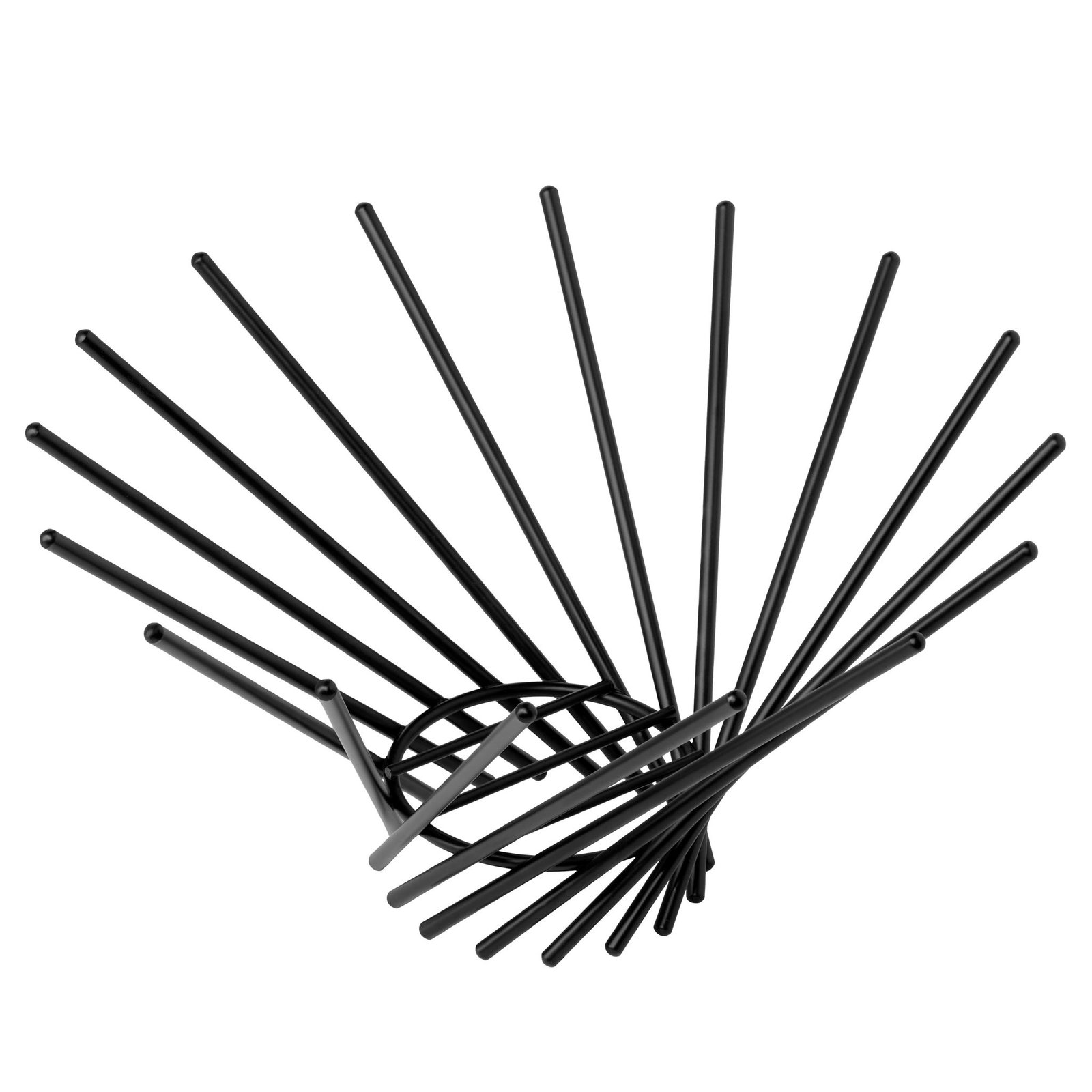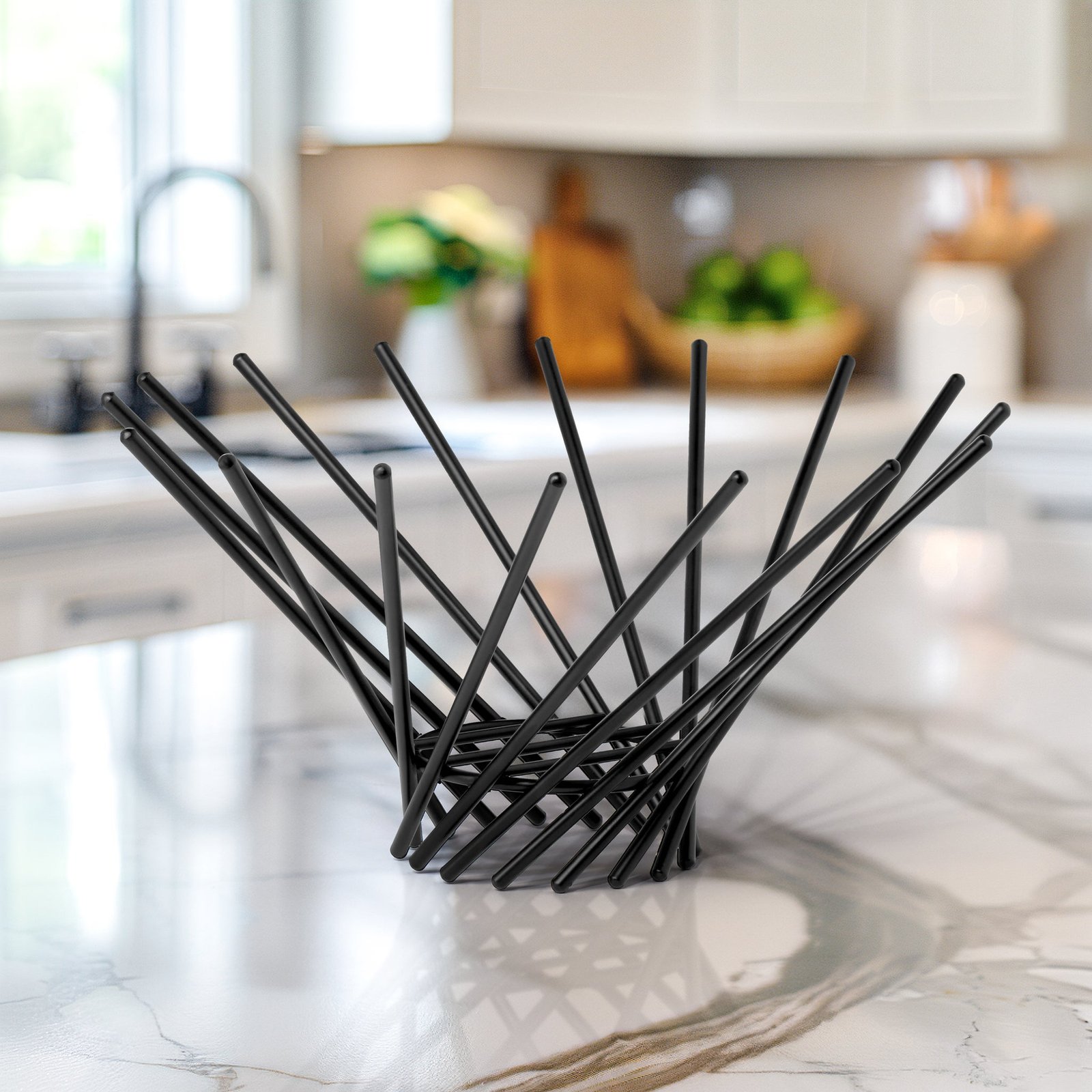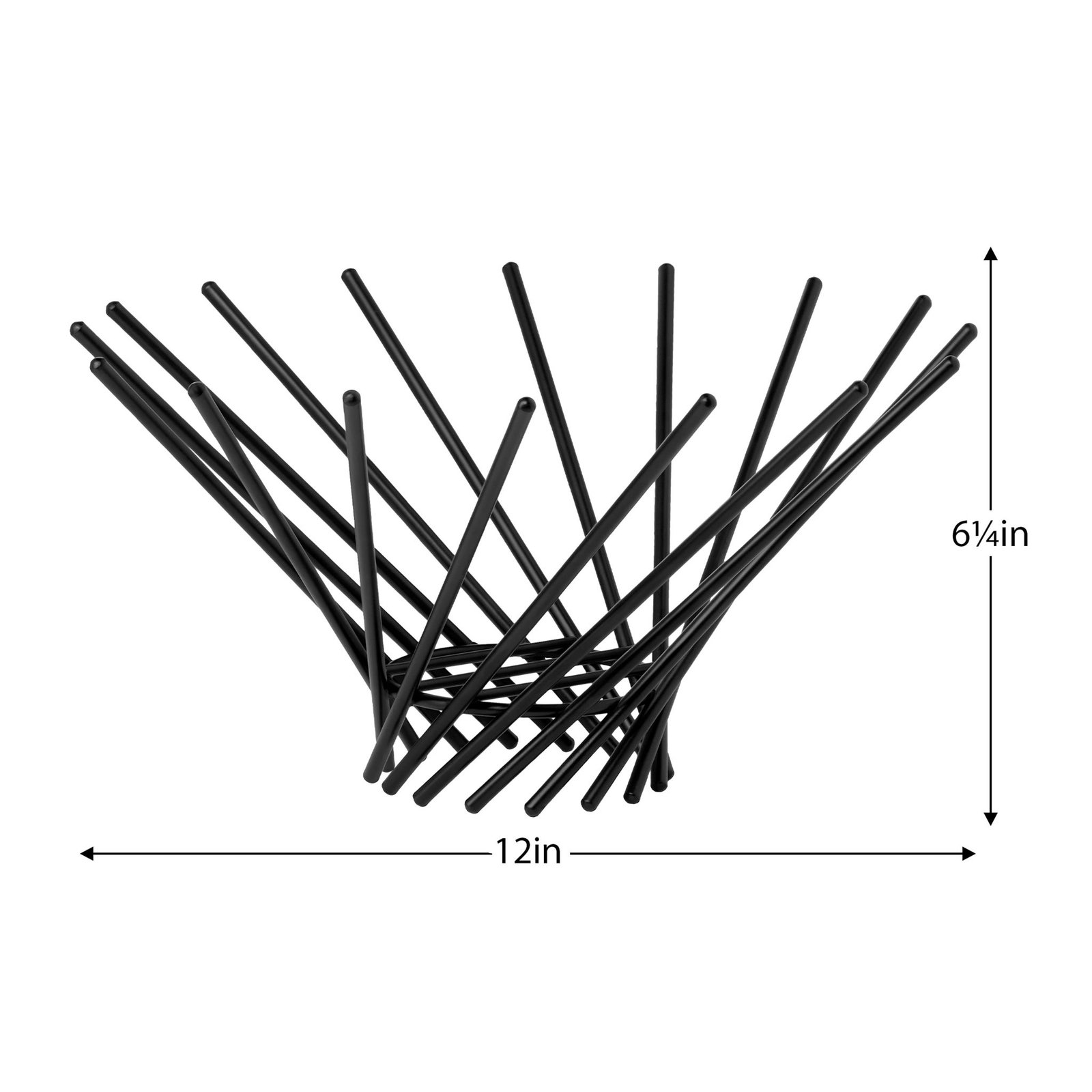 Elevate your kitchen decor with our sleek black powder coated metal decorative bowl boasting a modern twist in its design. Crafted from high-quality metal rods intricately arranged in a spun pattern this bowl adds a touch of contemporary look to any countertop or table. Its unique shape and matte black finish make it both a functional and stylish accent piece. Dimensions: 12d x 6.25h