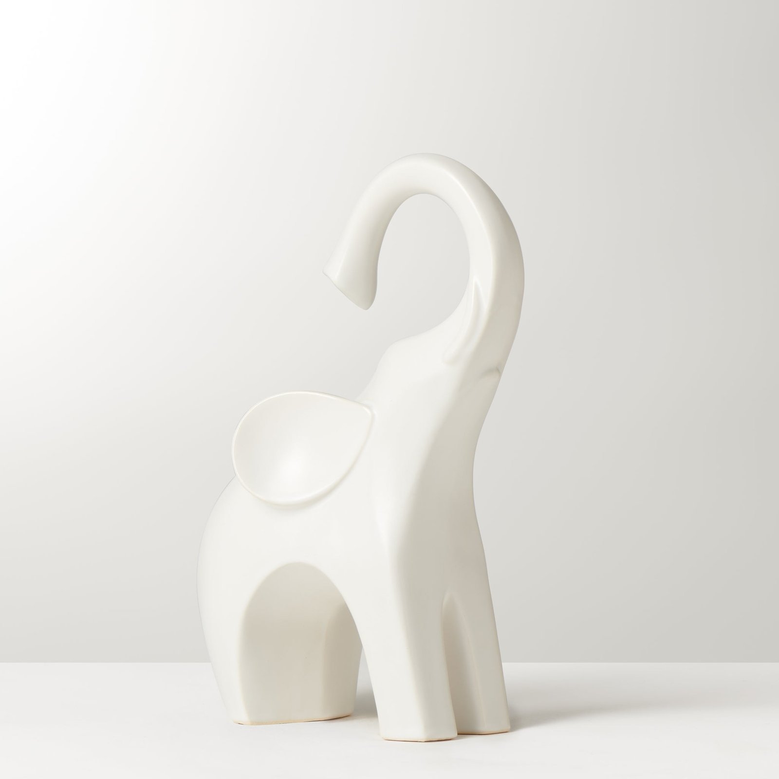 Whimsical Elephant 8.5 Inch Tall Ceramic Decor Sculpture – Matte White