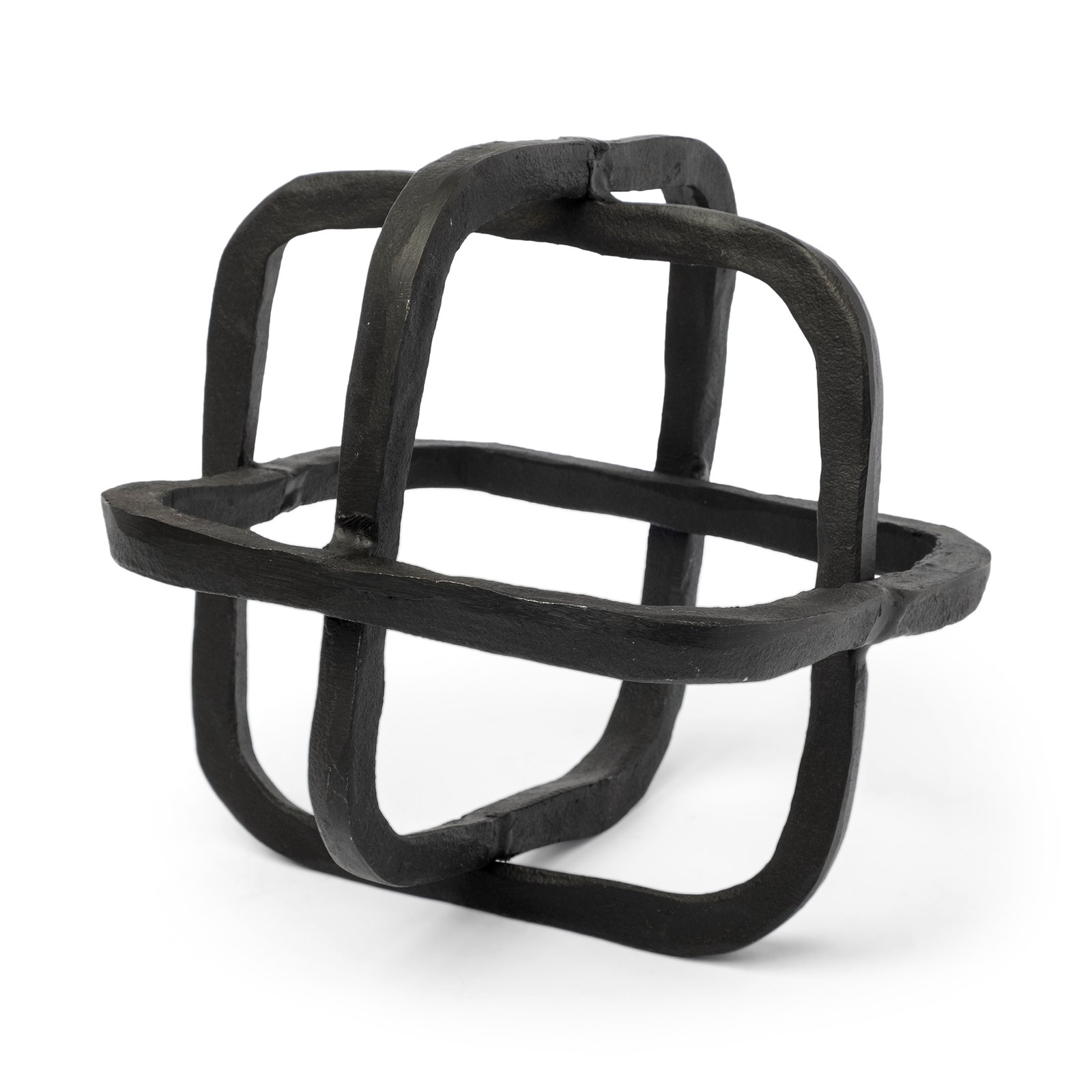 Composed of three solid metal curved-edge squares that are welded to form an orb like figure the Willem I is a stunning industrially inspired decor item from the Willem series. Finished in a matte-black polish the Willem I fits perfectly in spaces based on the Industrial and Mercana Modern design styles.. Dimensions: 8.6L x 8.6W x 8.6H