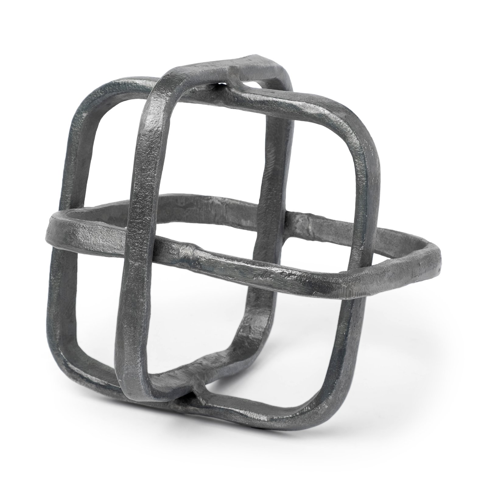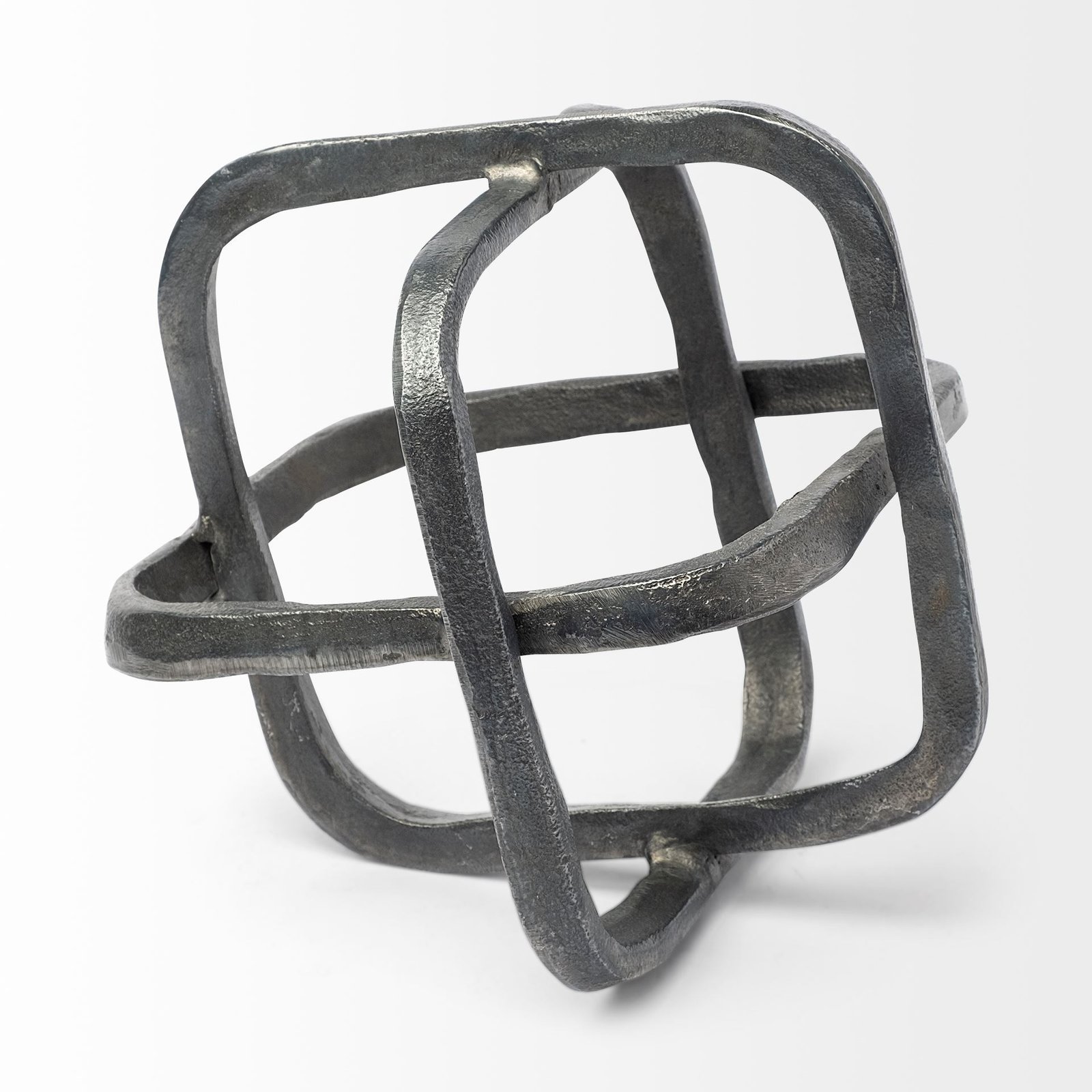 Composed of three solid metal curved-edge squares that are welded to form an orb like figure the Willem II is a stunning industrially inspired decor item from the Willem series. Finished in a satin-silver polish the Willem II fits perfectly in spaces based on the Industrial Mercana Modern and Enduring Elegance design styles.. Dimensions: 8.6L x 8.6W x 8.6H
