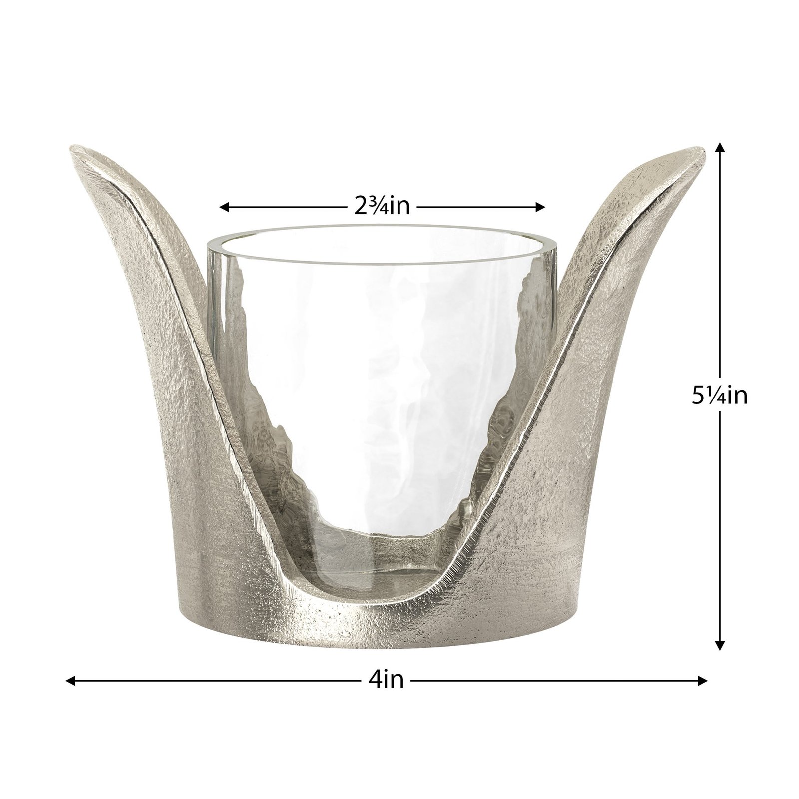 Wing Silver Nickel Plated 4 Inch Tall Aluminum Candle Holder with Glass Insert
