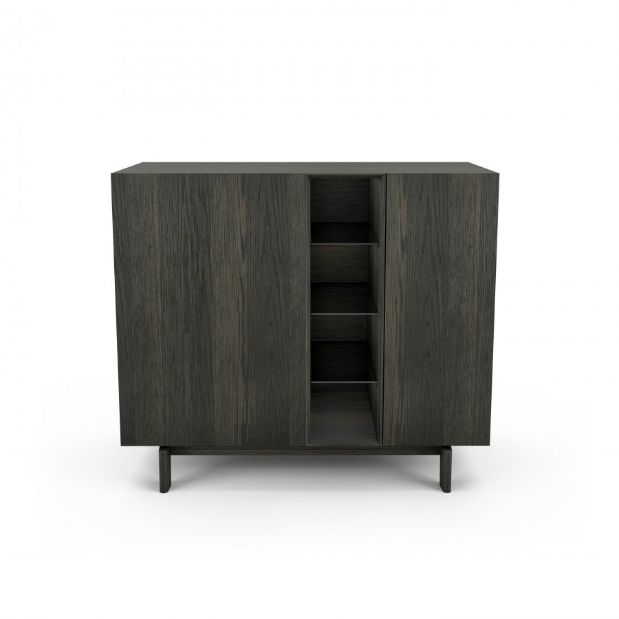 This white oak veneer sideboard includes two storage sections with doors each including two adjustable shelves. The open space includes 3 smoked glass shelves. . Dimensions: 48″W x 19″D x 42″H