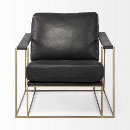 Watson Black Leather Wrap Gold Metal Frame Accent Chair