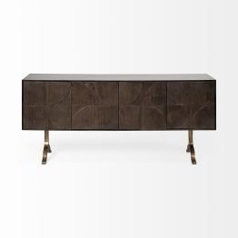 Xanti 70×18 Brown Solid Wood Frame Gold Metal Legs 4 Door Cabinet Sideboard